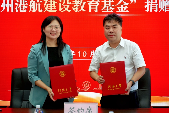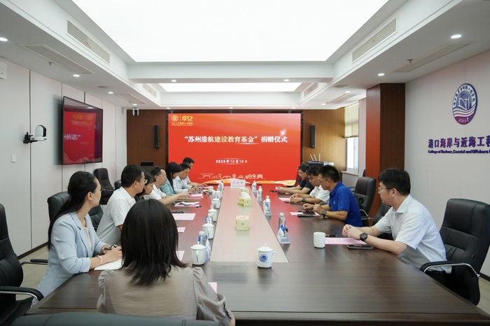 10月10日,“苏州港航建设教育基金”捐赠签约仪式在河海大学西康路校区举行。河海大学副校长陈达,港口及航道工程专业1996级校友、苏州港航建设工程有限公司总经理、苏州校友会常务副会长罗松涛,中交上海航道局有限公司江苏交通建设工程分公司党委书记张骏,江苏壹路技术咨询有限公司总经理吴梓愚,苏州校友会执行会长雷秋生,学校相关职能部门、学院负责人出席。仪式由港口海岸与近海工程学院党委书记张雪刚主持。
