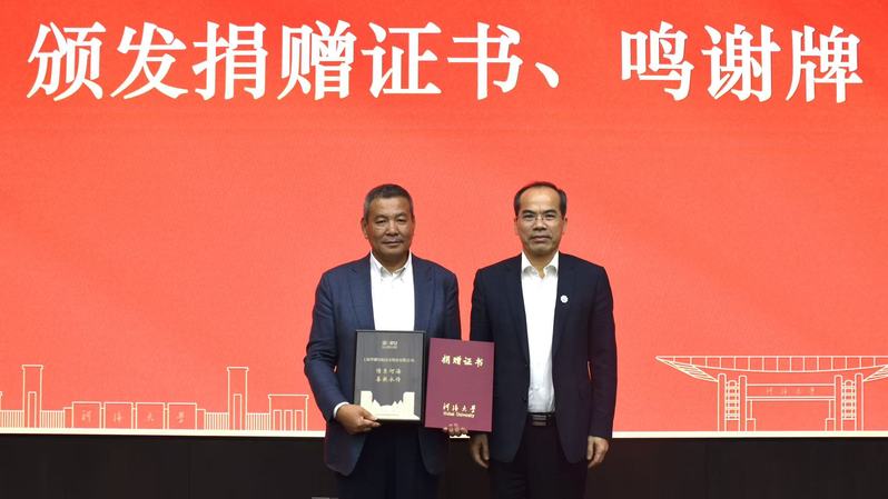 会上,双方签署捐赠协议。郑金海向赵延平颁发捐赠证书及鸣谢牌。